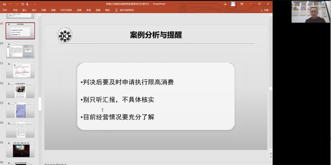 接下來,樓老師通過真實(shí)事件的引入,講解了實(shí)際操作上如何有效對付"老賴"的情況,并表示每一個地區(qū)法院執(zhí)行的力度各有不同,因此學(xué)會與執(zhí)行法官進(jìn)行有效溝通是十分重要的。